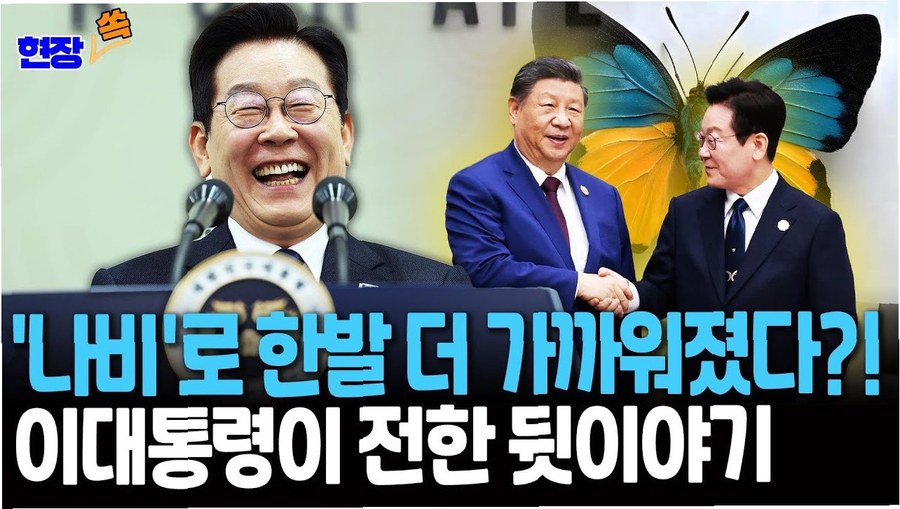 이 대통령은 이후 열린 내외신 대상 기자회견에서 시 주석과의 ‘나비’ 이야기를 꺼냈다. 그는 “어제 공연에서 관객 위로 날아다니는 나비가 시끄러워서, 제가 시 주석님께 ‘나비는 원래 조용히 나는데 이 나비는 모터 소리가 난다. 내년엔 소리 나지 않는 진짜 나비를 만들어 날려주면 좋겠다’고 말씀드렸다”고 전했다. 이는 내년 APEC에 대한 기대감을 드러낸 것으로 해석된다.